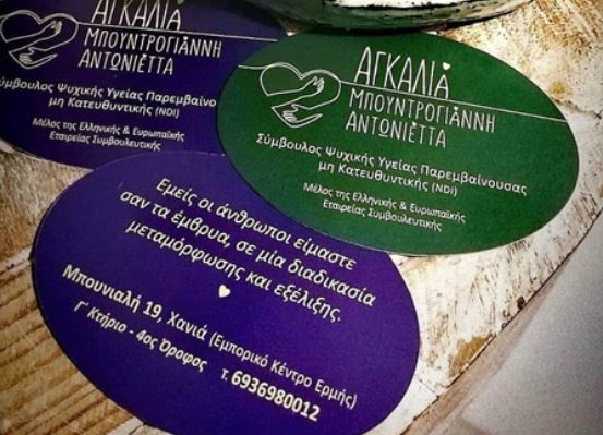 H σύμβουλος σεξουαλικής και ψυχικής υγείας και ψυχικής υγείας Αντωνιέττα Μπουντρογιάννη διατηρεί το γραφείο της στα Χανιά, προσφέροντας ολοκληρωμένες υπηρεσίες συμβουλευτικής και υποστήριξης σε άνδρες, γυναίκες και ζευγάρια, κάθε ηλικίας.